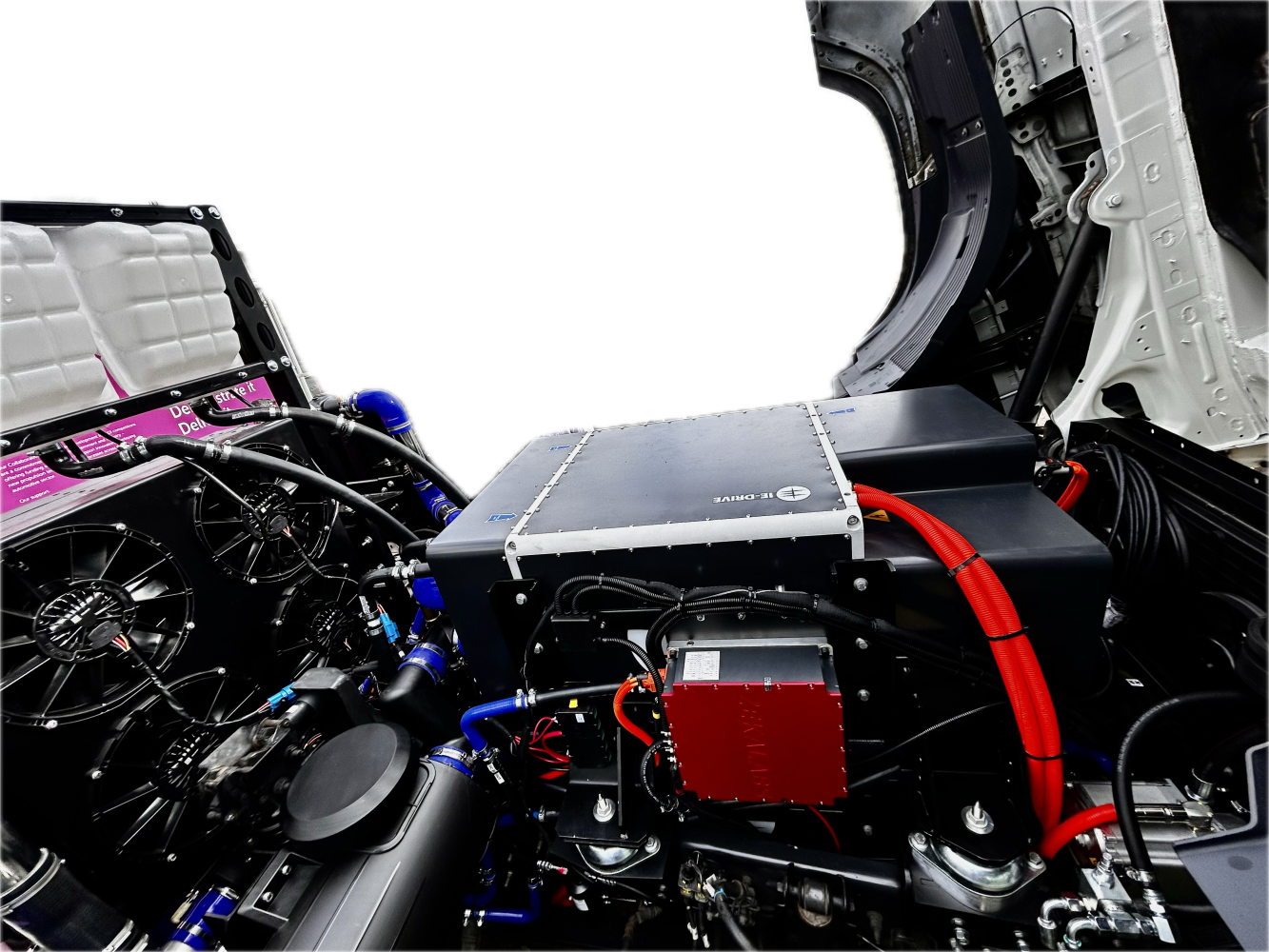 ICE Breaker uses power dense Equipmake motors and hydrogen storage tanks integrated into the side skirts, enabled this system to fit the existing form of the HGV-unit.
